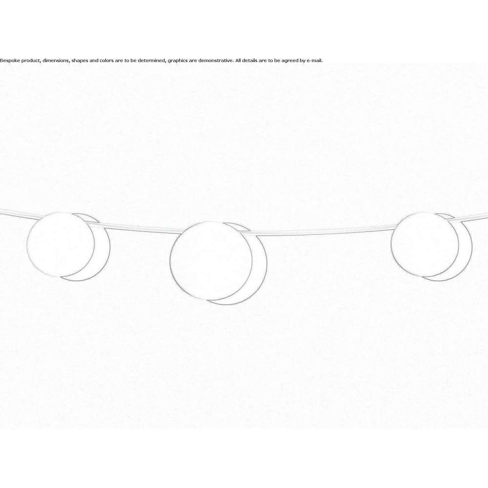 The June hanging lamp is a project by Emiliana Design Studio. The June garland has three discs emitting indirect light and can be attached to a wall, tree or other vertical surface. Perfect for outdoor use considering the IP65 protection rating.