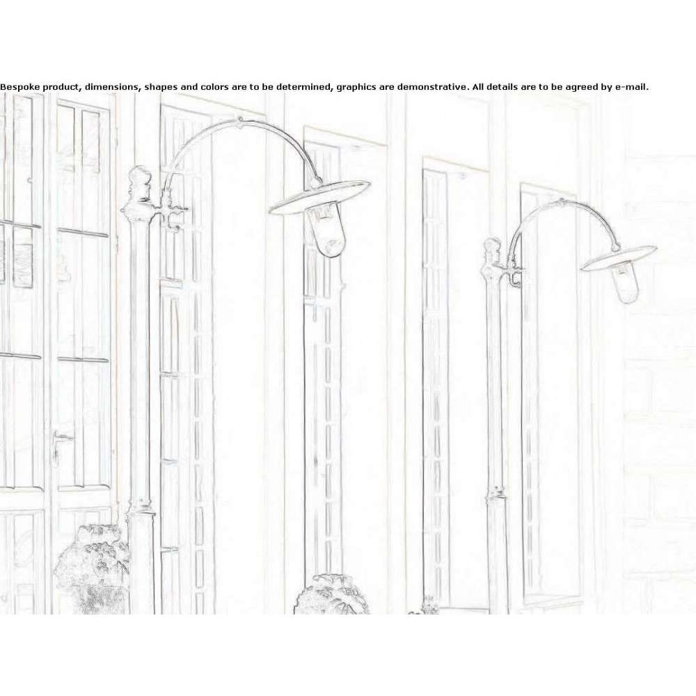 The design of the wall lamp is as follows: cast brass base, then antiqued, antiqued copper lampshade, white enamelled aluminum reflector, clear tempered glass and antiqued brass arm. The lantern must be integrated with poles and/or basements, which must be ordered separately. This is a set with excellent effect, which becomes a characteristic equipment of gardens, alleys and renovations.