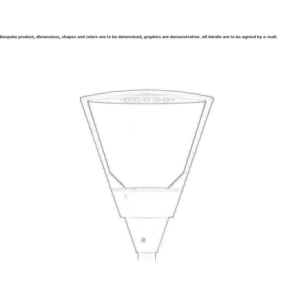 LED luminaire for urban and residential lighting, available in a version with two or four arms. The four-arm version can be supplied with a cover kit. Mounting on the top of the pole (diameter of the mounting element 60 mm). Color: dark gray Sablè 100 Noir. Optics: LT-C bicycle path, LT-M street (ratio of street width to pole height = 1) and LT-L street (ratio of street width to pole height = 1.25), rotosymmetric LT-ROT and innovative street optics front and rear LT F&B. Color temperature: 3000K and 4000K. CRI (color rendering index): ≥ 70. Average LED life [email protected]@Ta25°C TM21. All versions include a midnight self-learning system and, on request, a PLC remote control system. Framing without photobiological risk (EXCLUDED GROUP). Classification: CUT OFF.
