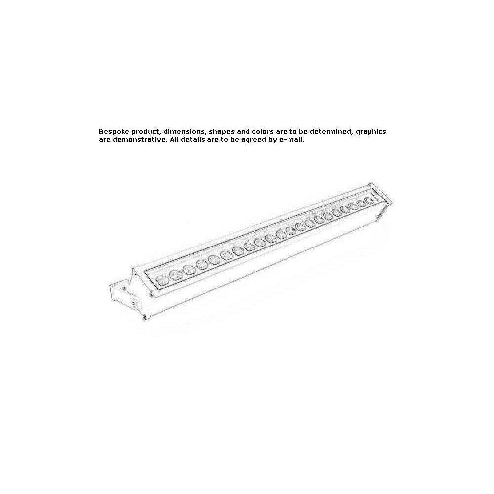 Linear luminaire for external mounting on facade/wall, length 1.000mm, Body made of copper-free extruded aluminum, phosphochrome-plated and polyester powder-coated, tempered glass safe, molded silicone seals. Fixing system via a central base, enabling product orientation. Special optics with "invisa-light" technology. Built-in LED driver 220-240V 50-60Hz, with 35 CREE XP-G2 diodes. Protection level IP67.