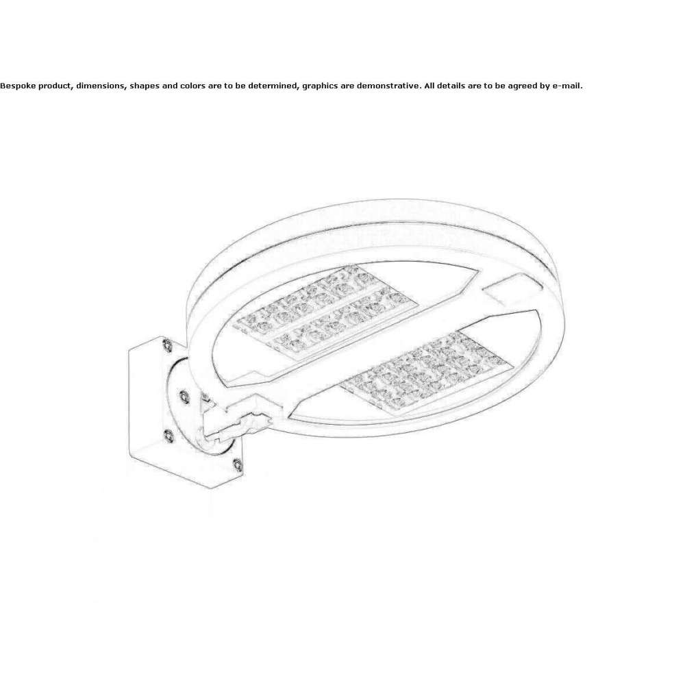 Round wall fixture for outdoor installation, with asymmetric downward light distribution. Phosphor-chrome and powder-coated polyester body with copper-free die-cast aluminum, tempered safety glass, molded silicone gasket and stainless steel screws. Built-in LED driver(s), with 24 CREE XP-G2 LEDs. IP66 protection level.