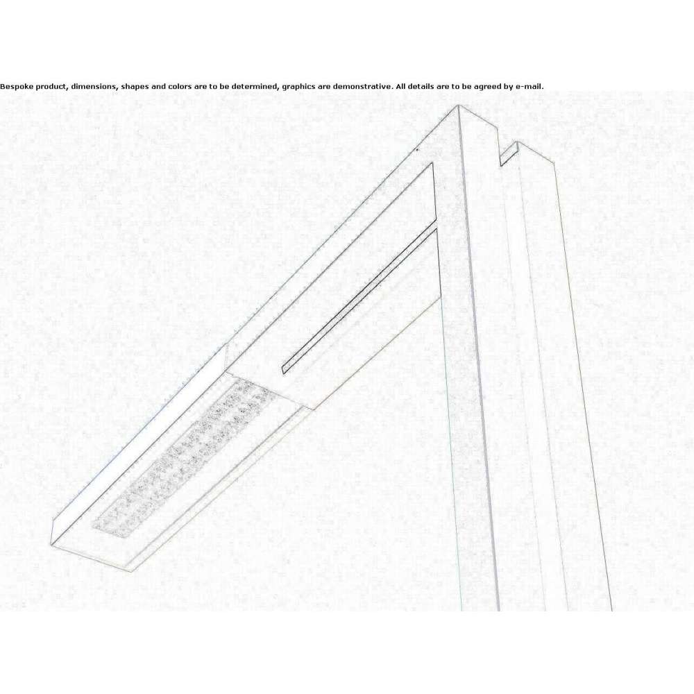 LED lighting fixture, suitable for streets, pedestrian and bicycle paths, parks and public areas in general. Street lighting distribution. Mounting on the top pole for rectangular or square poles. Body made of extruded anodized aluminum, "L" bracket composed of 2 rectangular profiles 60x50 mm made of galvanized steel, painted 900 sablé gray (anthracite). Controller attached to the pole.