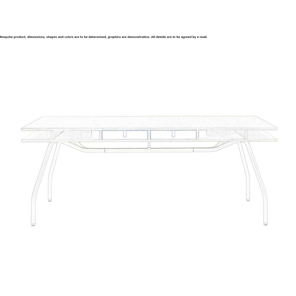 Table. Frame made of satin chrome steel. Veneered wood countertops. Satin chrome steel frame with a double top, equipped with handy drawers. Originally designed for storing rolled-up architectural and planning documents, its spacious compartments make it a useful and original work surface, both now and in the past. The tabletop is available in two different sizes and consists of double panels with beech or oak veneered surfaces and framed in solid wood. The drawers are made of the same materials, but there is also a small storage compartment made of satin aluminum. Both tops are supported on a frame made of satin chrome-plated steel.