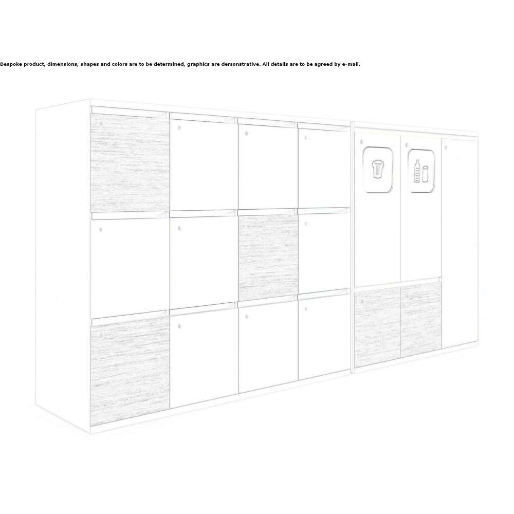 Practical storage compartments, designed as temporary storage for equipment and items of employees sharing a workstation. A composition with 9 to 16 cabinets is available, which can be supplemented with full-size modules for hanging clothes and recycling garbage.
