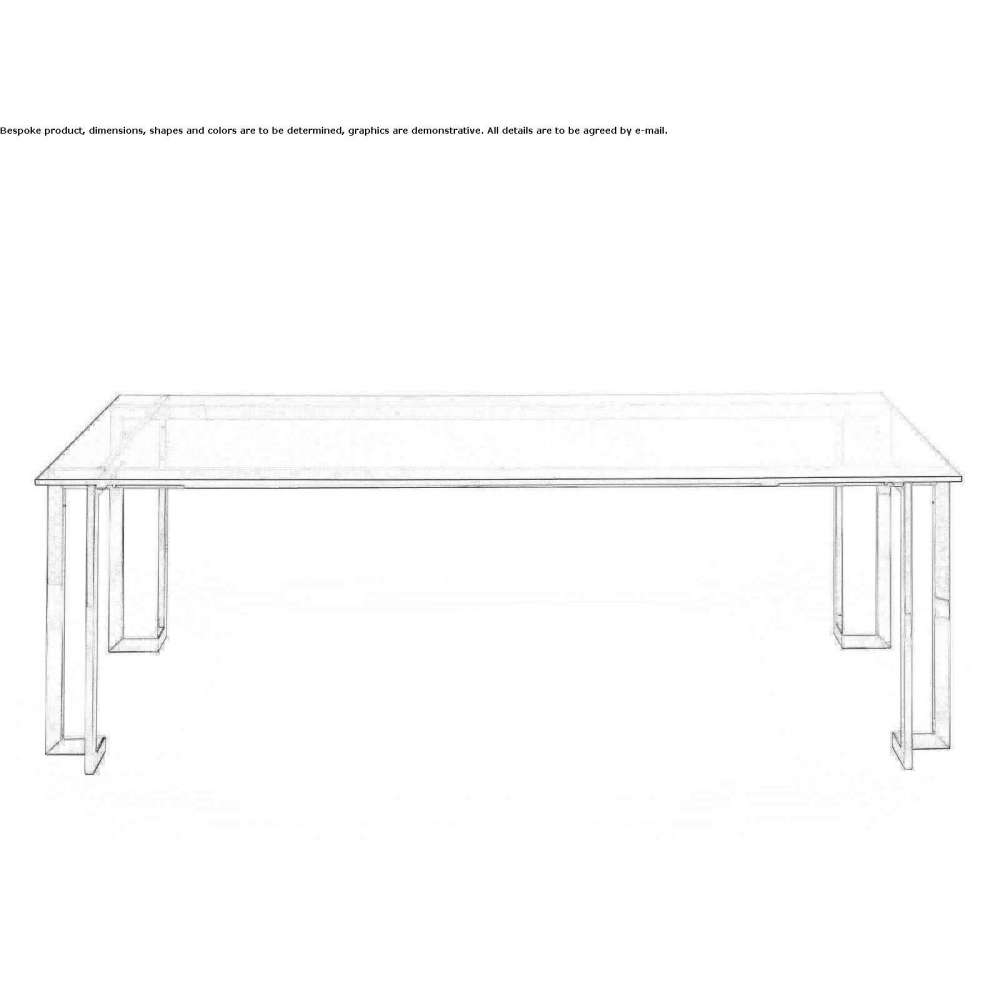 Lord is a table with a 15 mm thick transparent glass top. Glass painted according to patterns in a clear or satin version on request. Bright stainless steel structure (40x20x2mm). Also available in satin-finished stainless steel or embossed white or black painted steel. In the XL versions, from 260x110 cm, the top is always made of 19 mm thick transparent glass. Construction made of bright or satin stainless steel (50x25x3mm). Custom countertop sizes made to order.