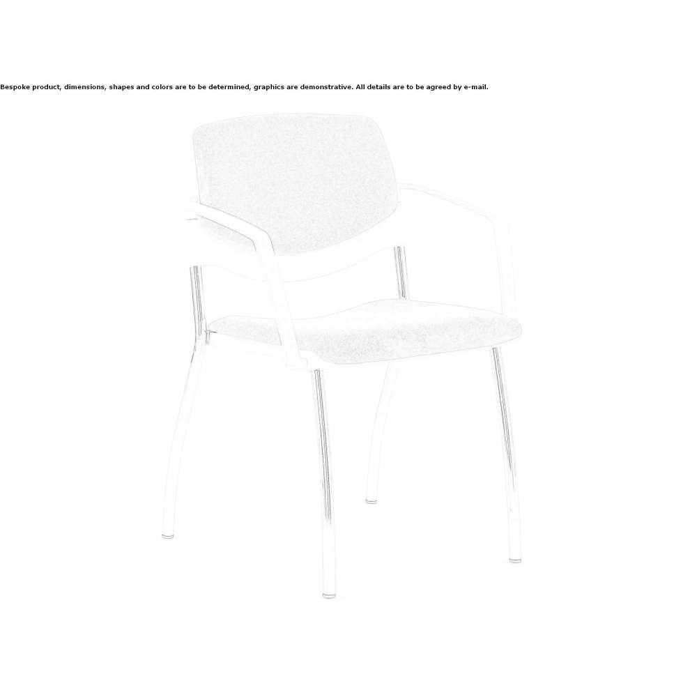 Community chair with a seat and backrest made of black or white polypropylene or with an upholstered seat and/or backrest. Four-legged frame, chrome-plated or black lacquered. Fixed armrests in black or white, optional writing tablet and connecting mechanisms. Two-, three-, four- and five-seater beam units are available.