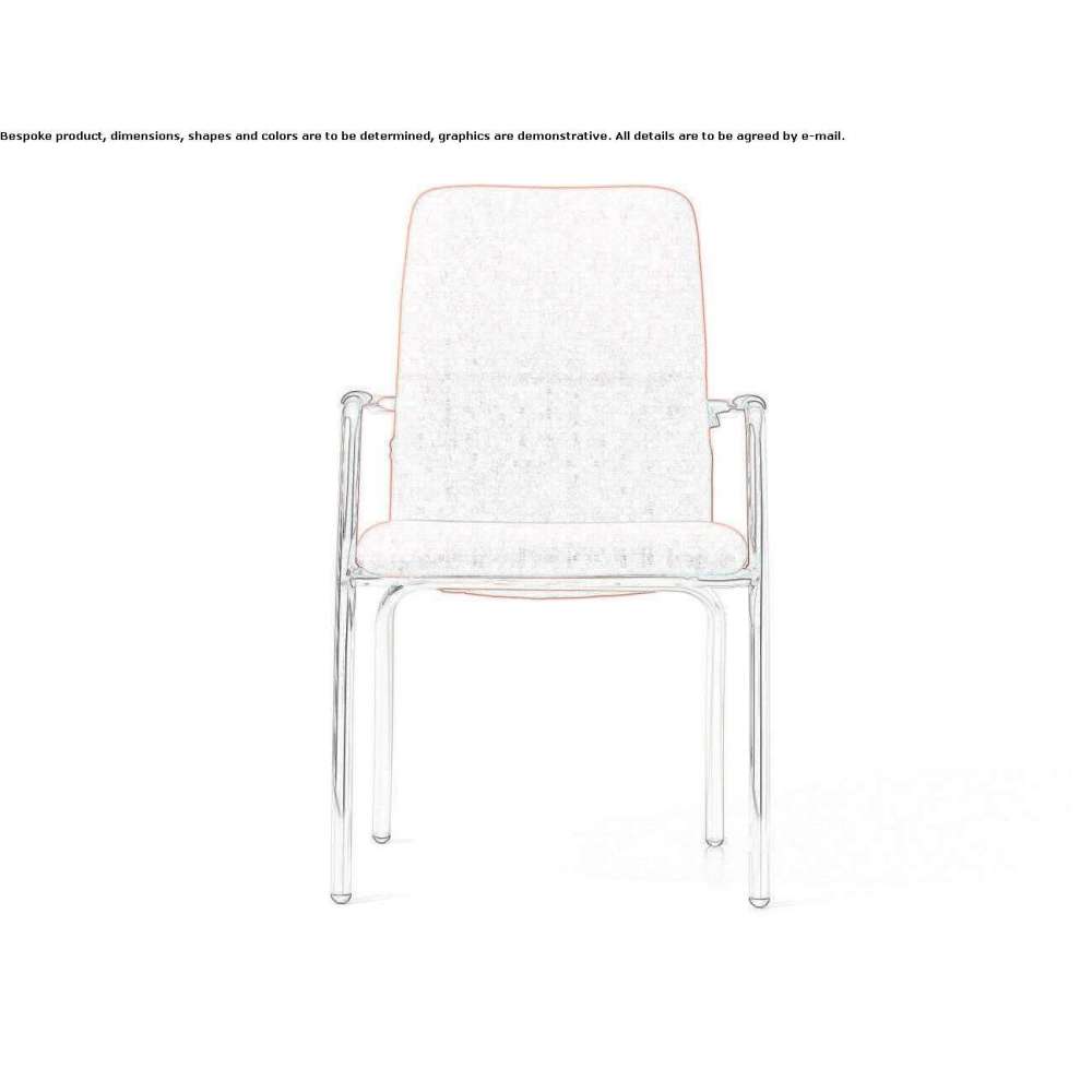 The backrest of the guest chair is padded in polyurethane foam or mesh, always with an upholstered seat. Chrome-plated frame on cantilever or 4 legs, with fixed armrests and black polypropylene cover. Stackable.