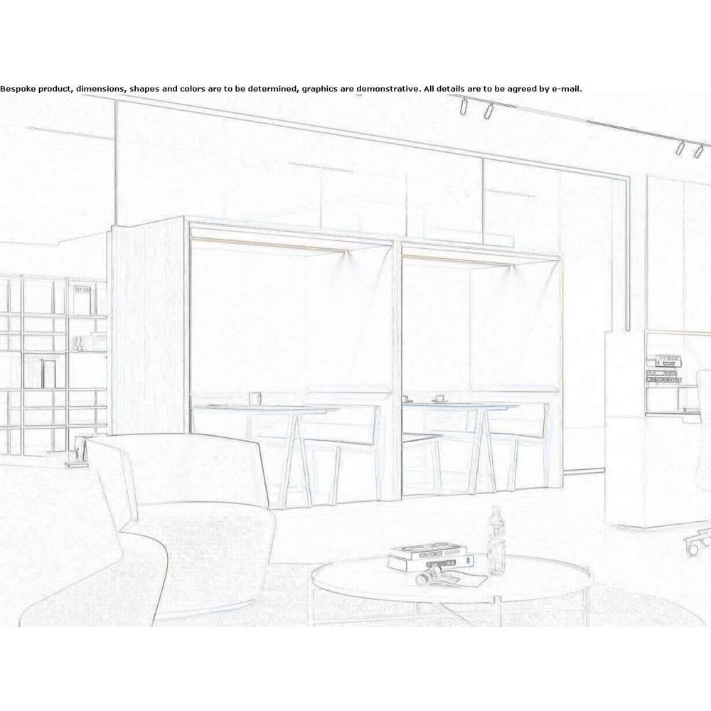 Briefing Interwall is a system that integrates with full-length glass or blind partitions from the Estel range, creating niches for individual work, storage, relaxation and collaboration. It can be mounted on one side or in a double-sided version. Estel, after extensive consideration and field analysis, offers a series of devices that integrate full-size partition walls, enriching the partition walls with a total of 7 new functions: cabinets, cafe, conference space, shelf for display and storage.