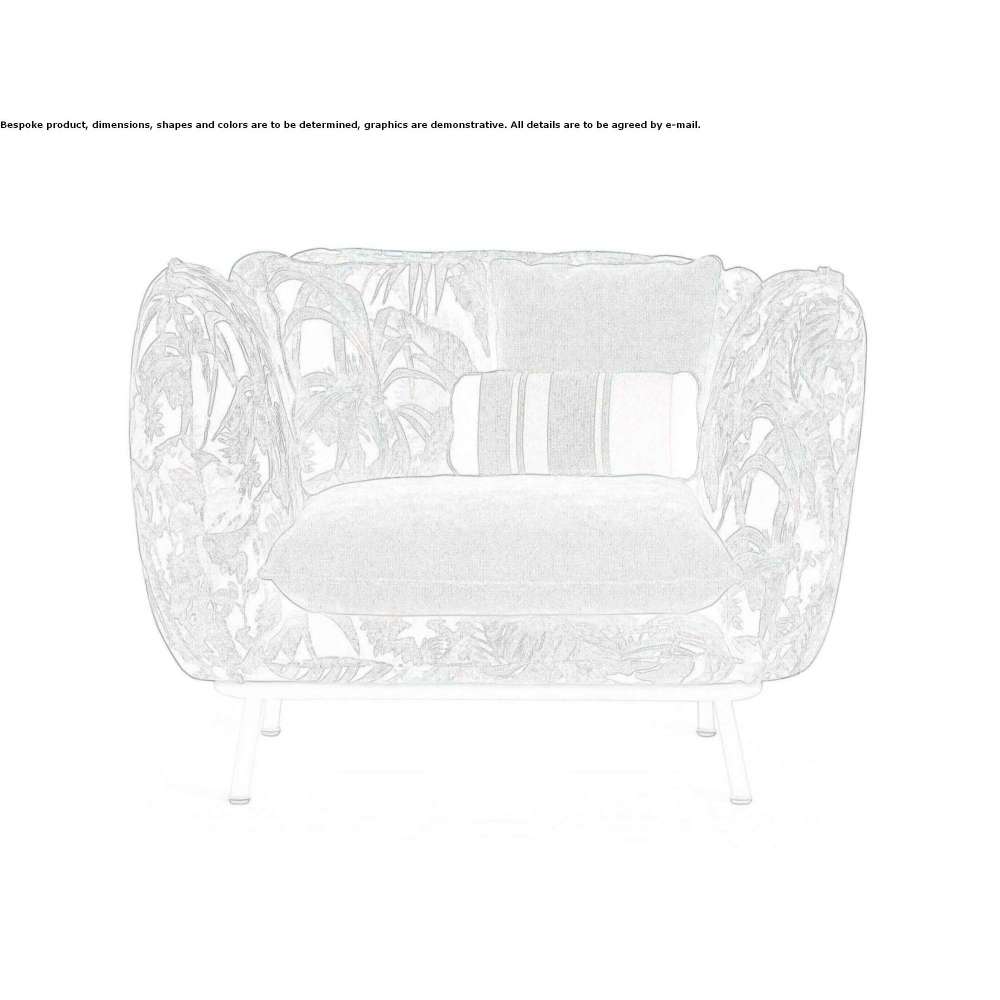 Lipari is a garden armchair with armrests, inspired by one of the most intriguing islands of Sicily. Matte white aluminum frame and cushions made of multi-density polyurethane foam, recyclable polyester fiber and waterproof cotton. The cover is made of waterproof cotton, is removable and washable and is available in a variety of designs. Moreover, thanks to special processing, it has high resistance to UV rays and salt. The padding is easily removable and a tailor-made cover is available upon request to further protect the product in the colder months. Materials Garden armchair with matt white painted aluminum structure. Multi-density polyurethane foam padding with recyclable polyester outer fiber and waterproof cotton. Coating with a hydrophobic coating with high resistance to sunlight and saltiness. Fully removable cover. The solarium includes a decorative buckle in a matte white finish with an outdoor leather strap. Optional: outer cover.