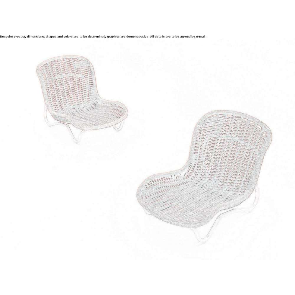 The Jardín series consists of an armchair, a low armchair and a deckchair. The original wicker weaves have been modernized with the unique Twiggy rope, which is handwoven over modern, curved aluminum frames and polished paint.