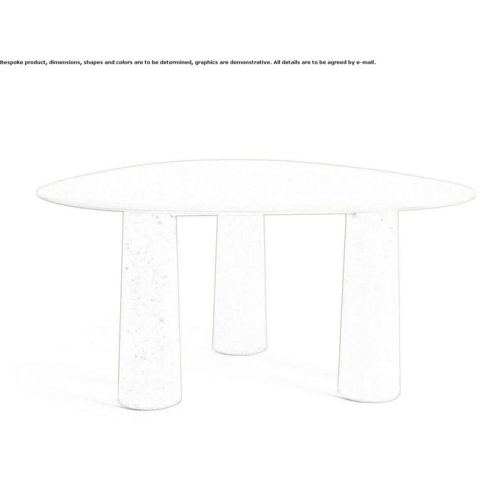 Bold is a triangular concrete garden table. Ethimo presents a new line of "carved" tables that add character to outdoor spaces. Inspired by megalithic architecture, Bold tables are characterized by an exceptionally expressive form and content. They are striking in their combination of materials, revealing a casual, informal spirit that makes them perfect in any setting and the ideal solution for constantly changing outdoor scenarios.