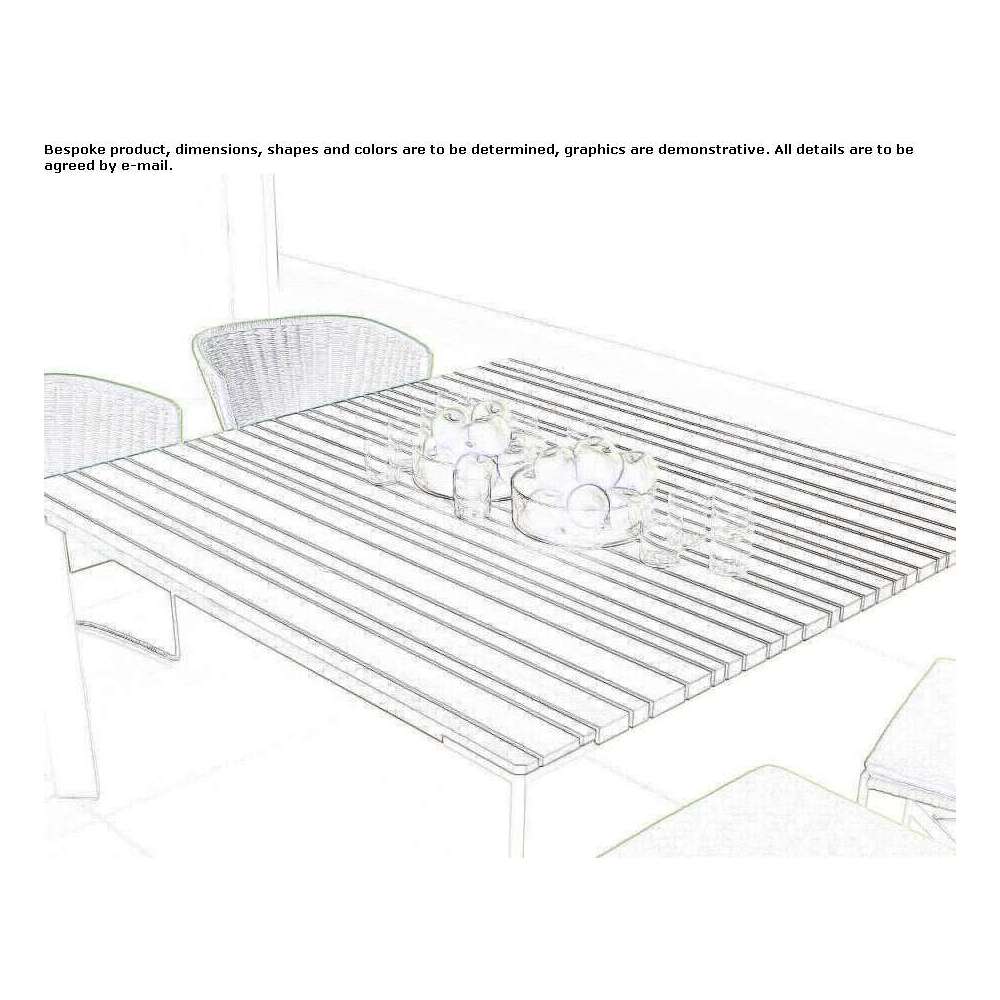 Dining tables with a structure made of cataphoresis steel, lacquered in avorio or graphite; plastic spacers. Sassafras wood top. The use of a protective cover for the winter kit is recommended. The Sunset series also includes side tables with wood, stone or marble tops.