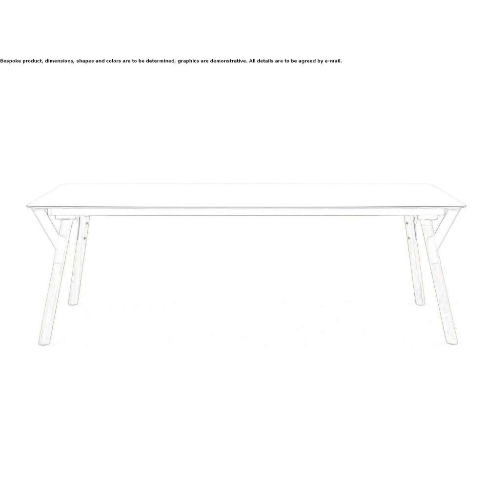 Structure et pieds en metal revêtu en poudre. Pieds également disponibles en bois massif de teckvenant de plantations certifiées. Dessus en HPL. The Link collection includes fixed or extendable tables with a powder-coated stainless steel structure and tops and legs available in various types and finishes. The selected materials are ceramics, HPL and teak. The endless variety of shapes and sizes makes these tables an extraordinary example of aesthetic versatility.