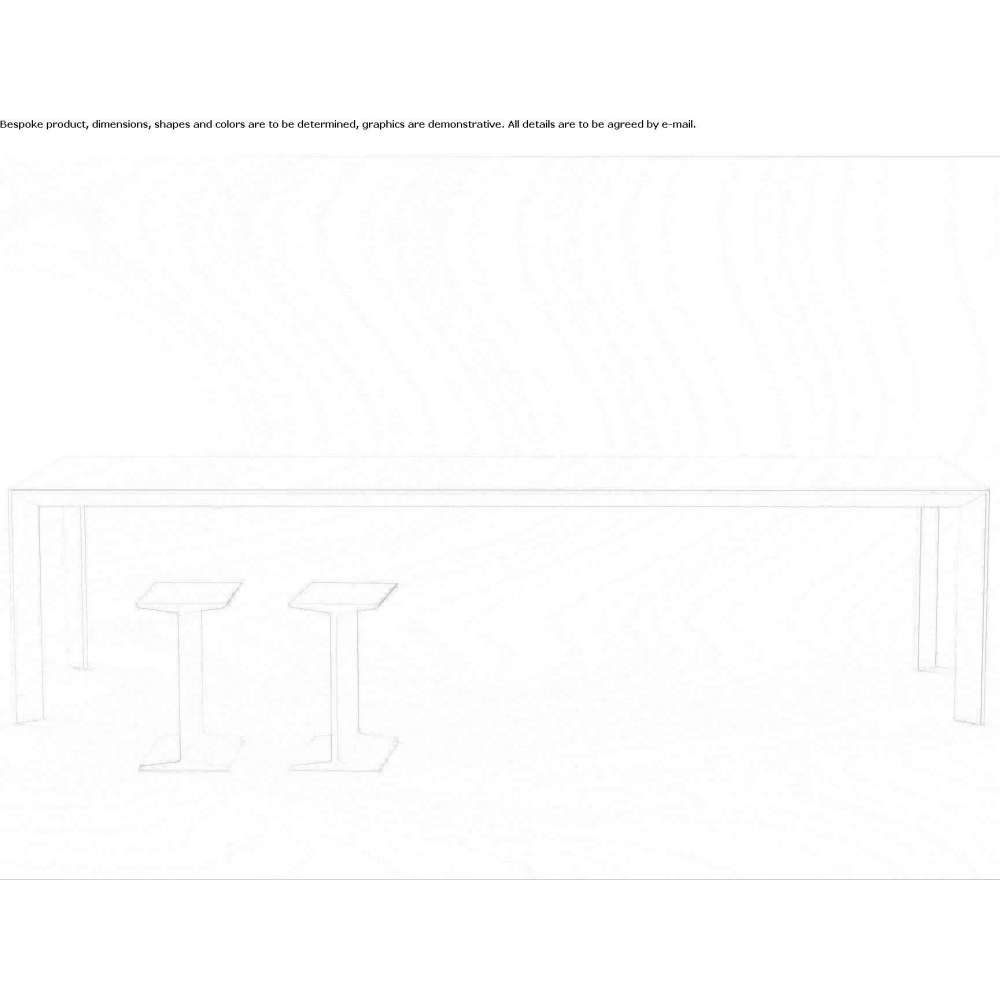 Table with extruded aluminum frame and die-cast construction joints. Built-in countertops made of 8 mm thick tempered glass, ceramics, laminate or wood. Some versions are suitable for outdoor use.