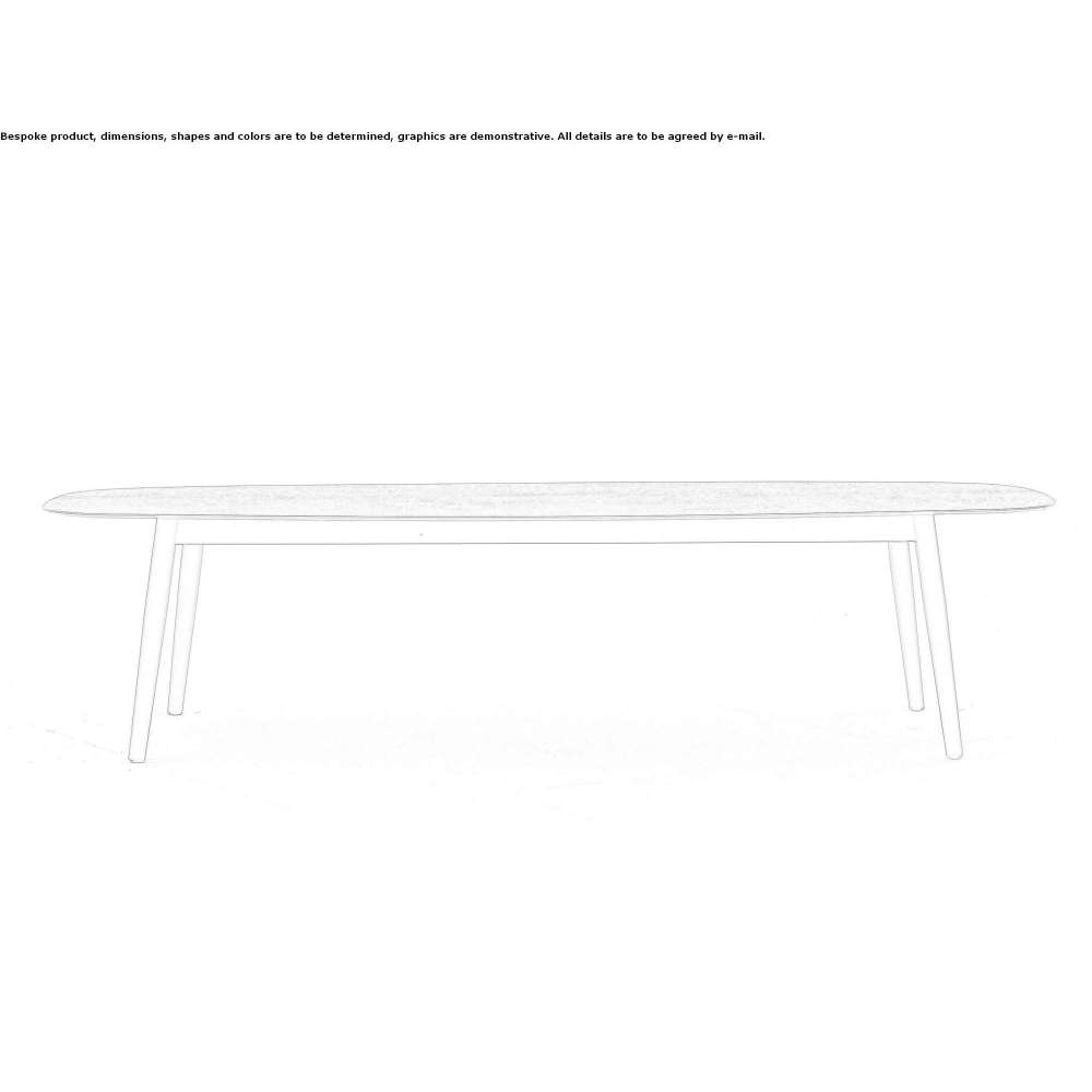 Powder - coated aluminum structure and a top made of HPL or ceramics . Legs made of aluminum or solid teak from a certified plantation. Construction resistant to weather conditions and UV radiation. The Ellisse collection consists of tables with elliptical and rectangular tops, smooth and elegant in line with modernity, and refined, necessary structures. Upstream is a search for versatility, understood in this case as the ability to adapt to the most diverse spaces.
