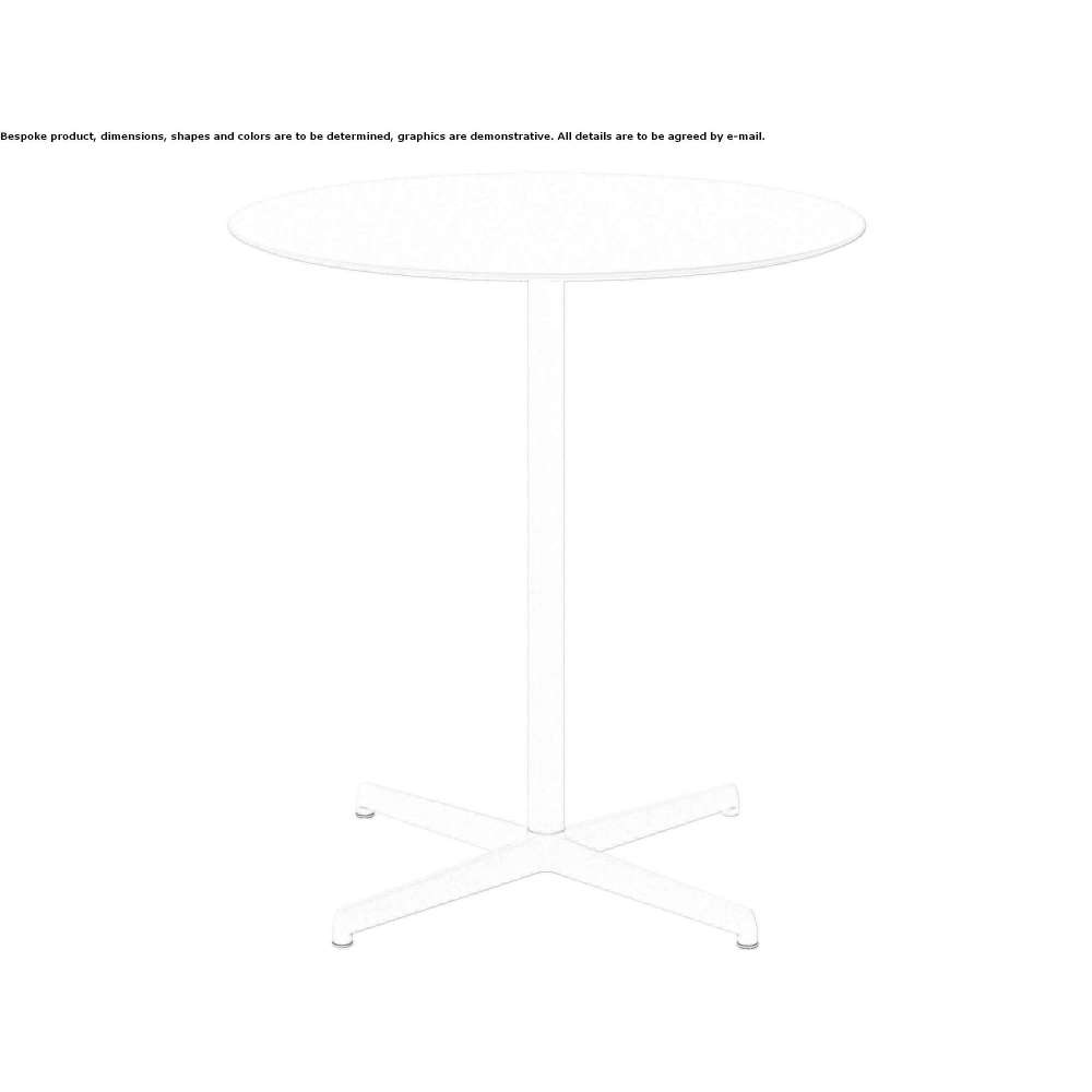 Table with die-cast aluminum base and steel tube. Countertop made of layered laminate, available in black, white or lacquered. Lacquered base in the same finish as the top.