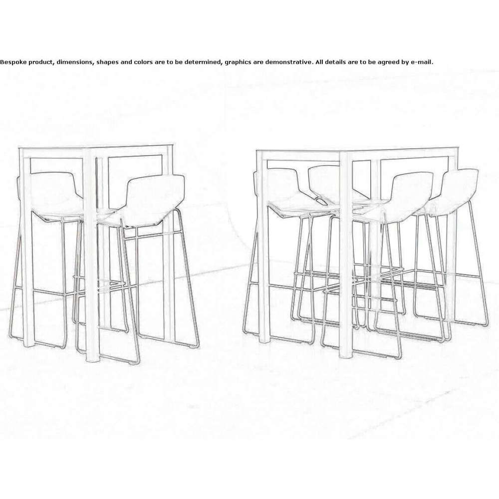 table with a painted steel structure and a reduced-thickness top made of layered HPL laminate (high-pressure laminate). The colors of the structure can be combined with the colors of the countertops. The LA family tables are modular and are produced in various sizes and heights. They are characterized by an essential design, softened by rounded corners of the legs and top. They are strong, light, suitable for bars and restaurants, indoors and outdoors.