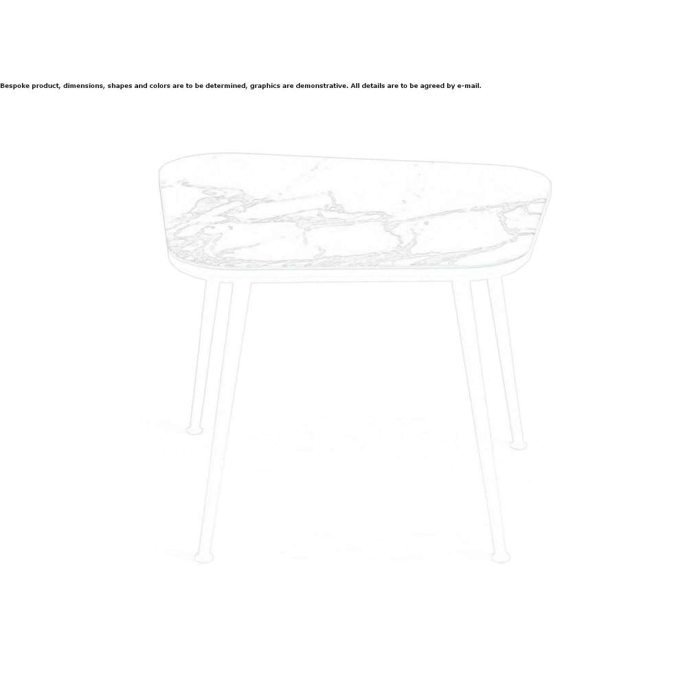 Garden coffee table with metal conical legs in matt white powder coating - coated finish , white lacquered frame under the countertop in a calendered aluminum tube with a powder-coated finish, panel under the countertop made of HPL and Vetrite countertop.