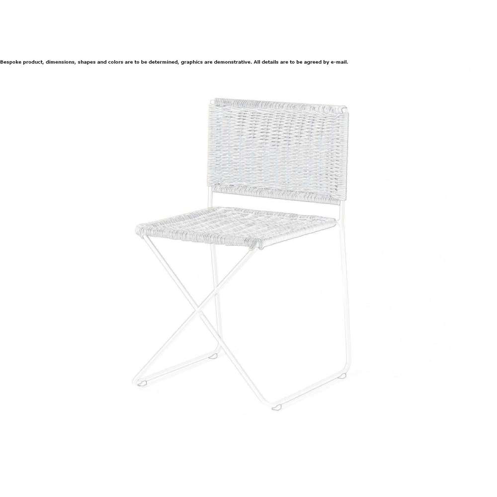 The Ramón chair is a carefree yet serious design, suitable for both indoor and outdoor use. The white metal frame and elegant X-shaped legs are finished with a seat and backrest in white or natural wicker. The geometry of this chair makes it easy to stack and move.