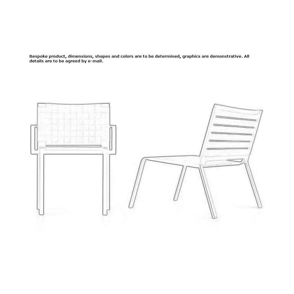 complete furniture collection developed together with two outdoor design specialists, Harry and Camila. Includes a stackable chair, a lounge chair with or without armrests, a stackable chaise longue and a deckchair on wheels. They have epoxy-coated aluminum frames for outdoor use, and the upholstery is made of polyester rope or interwoven strips of the same material to achieve a textile and technological effect. Frames and upholstery are available in beige, brown, anthracite and black to provide tone-on-tone shades or experiment with multiple color combinations.