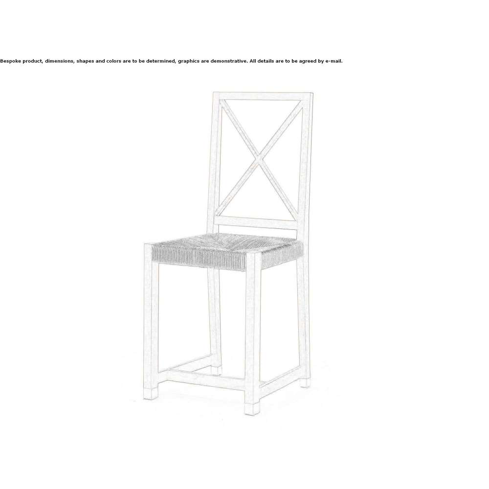 Solid wood structure iroko with a natural finish or gray stained or white lacquered, or in 316 stainless steel with an electropolished or epoxy powder coated finish in white 100, wine red 405, khaki green 705 or oxidized. The seat is made of woven extruded PVC with a nylon core in anthracite 7005, burgundy 7002, white 7007, sand 7008, brown 7004, green 7006; or with polypropylene cord in sand color 8001, anthracite 8005, burgundy 8002, green 8006, white 8007, brown 8004.