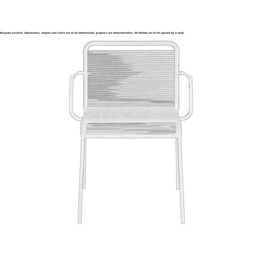 Light and subtle, ARIA combines a simple square metal frame with fine details, so you can enjoy outdoor life without sacrificing style. Stackable chair, with or without armrests, made of Aisi 316L stainless steel, powder coated in white, black or sandblasted. The seat and backrest are handmade from double twisted polyester thread with a cotton finish. The stool is available in the same finish.