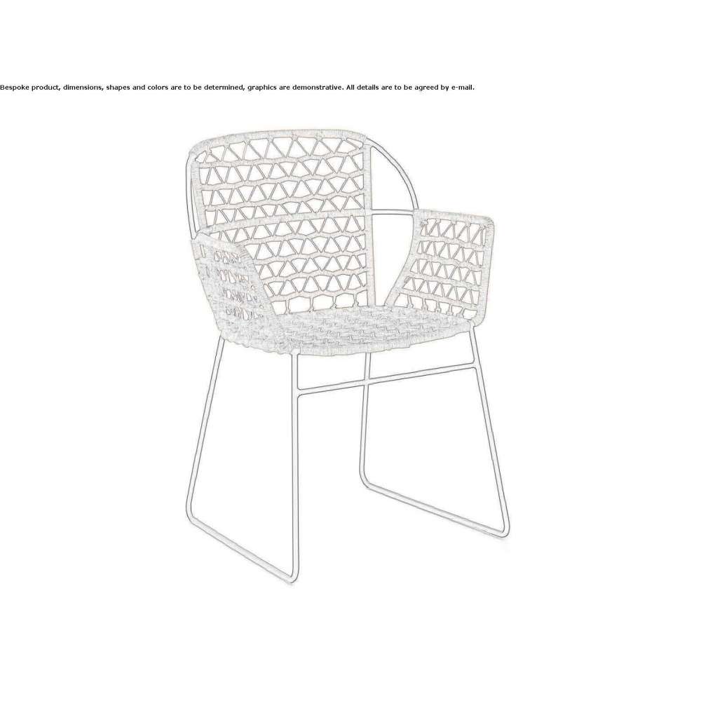Emma is a hand-woven chair. Lightweight, coated steel sled base with armrests. Woven seat and backrest with external rope option. Emma chairs and armchairs, created by Studio Sven Dogs Design for Crassevig, are perfect for architects and designers who are looking for a light, ergonomic and friendly collection: the woven rope emphasizes what is important and the elegant line, guaranteeing exceptional comfort of the backrest and seat, and at the same time retaining all the resistance of the coated steel at the base. The adaptation of materials transforms Emma into a versatile concept for private and contract spaces, indoors and outdoors.