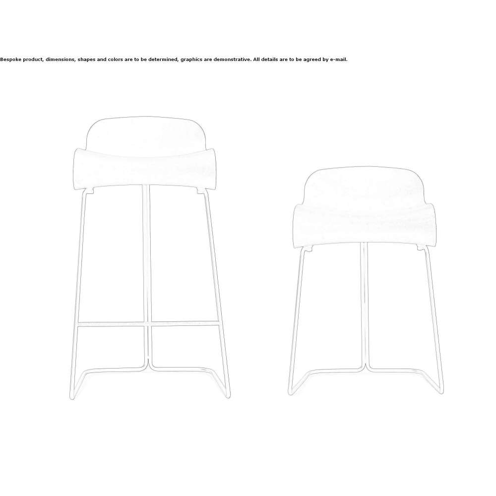 The base finish is painted steel to match the seat. Design research is constantly driving new shapes, technologies and materials. The BCN stool is the result of one of these explorations, carried out in collaboration with designer Harry-Paul. It all started with the shape, the ergonomic and curved seat, and then the choice of technology and material that are rare in the furniture industry: PBT, a plastic that is both strong and flexible.