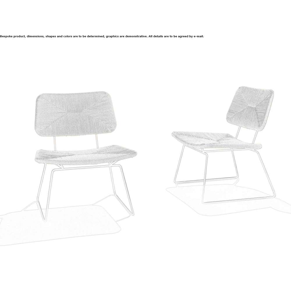 The design concept is based on a bold material contrast: the structure is made of elegant stainless steel, and the seat and backrest are made of finely woven, matte polypropylene cord in natural, ice, straw or anthracite colors.