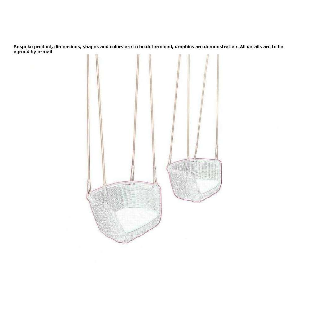 A swing with a steel structure and hand-woven upholstery. The steel structure is upholstered with one- or two-color rope cords, Aquatech or Filodry ropes. The swing comes complete with suspension cables filled with highly resistant high-tech yarn and an AISI 316 stainless steel mounting system. The seat cushion is available with a removable cover in Luz or Rope T fabric, specifically designed for outdoor use.