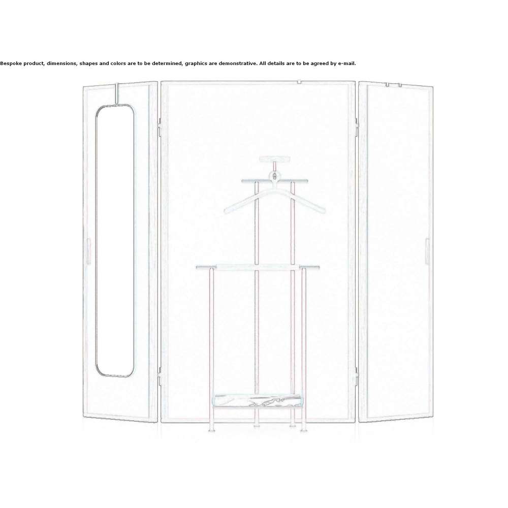 Stay Screen is ideal not only for creating private partitions, but also for hanging items thanks to accessories that can be attached to screws located at the top of the screen panel. They consist of one high and one low bronze or bronze hook, a long mirror with an embossed inner frame, and a round mirror that can be combined with a dressing table, with the same embossed inner frame.