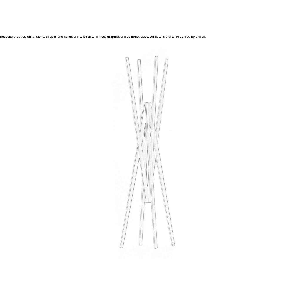 The name of the hanger reflects the symmetrical structure resulting from the rotation and mirror reflection of a single wooden part. This design principle provides many benefits. It facilitates production and reduces material consumption, enables easy assembly and disassembly and transport of flat packages. The straight lines of the juxtaposed pyramids dynamically change the appearance of the hanger, from static symmetry to a dynamic and vibrating form, depending on the viewing angle.