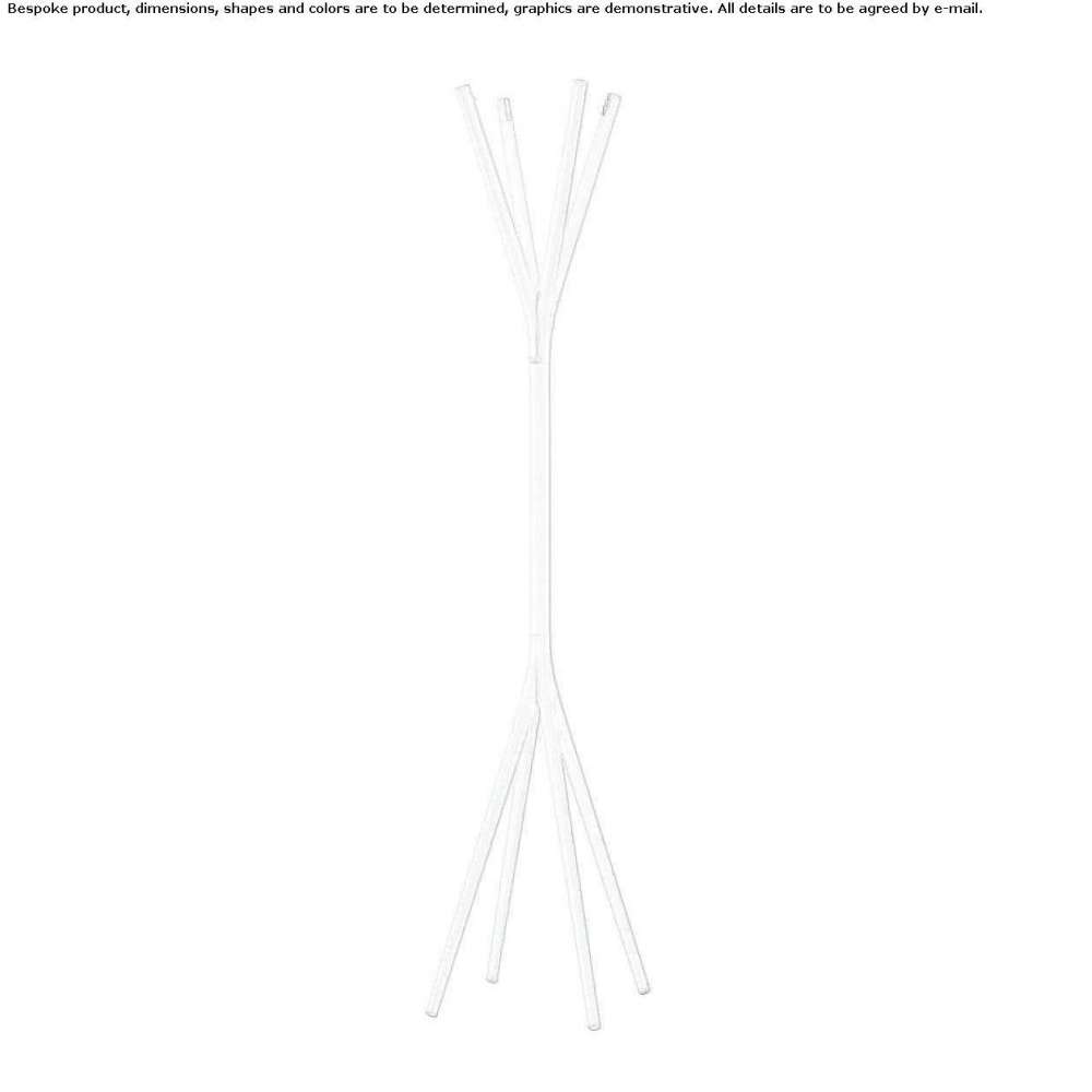 Clothes rack with die-cast aluminum structure and extruded aluminum center section. Coat hanger in black or transparent methacrylate. Hanger: an everyday item. As Philippe Starck and Eugeni Quitllet see it: totem sculpture. Elegant, primitive, and at the same time extremely modern. It should be equipped with a free and flexible system of shelves and storage elements, creating compositions that are functional and aesthetically attractive. To'taime consists of three elements: a central structure in extruded aluminum, a base and a top element, both in cast aluminum. It can be coordinated with two different accessories: a waste bin in turned aluminum, a tray available in painted glass or stove-enameled aluminum. All accessories can be matched to the hanger, which is available in an elegant chrome version or in a wide range of modern and striking enamel finishes.