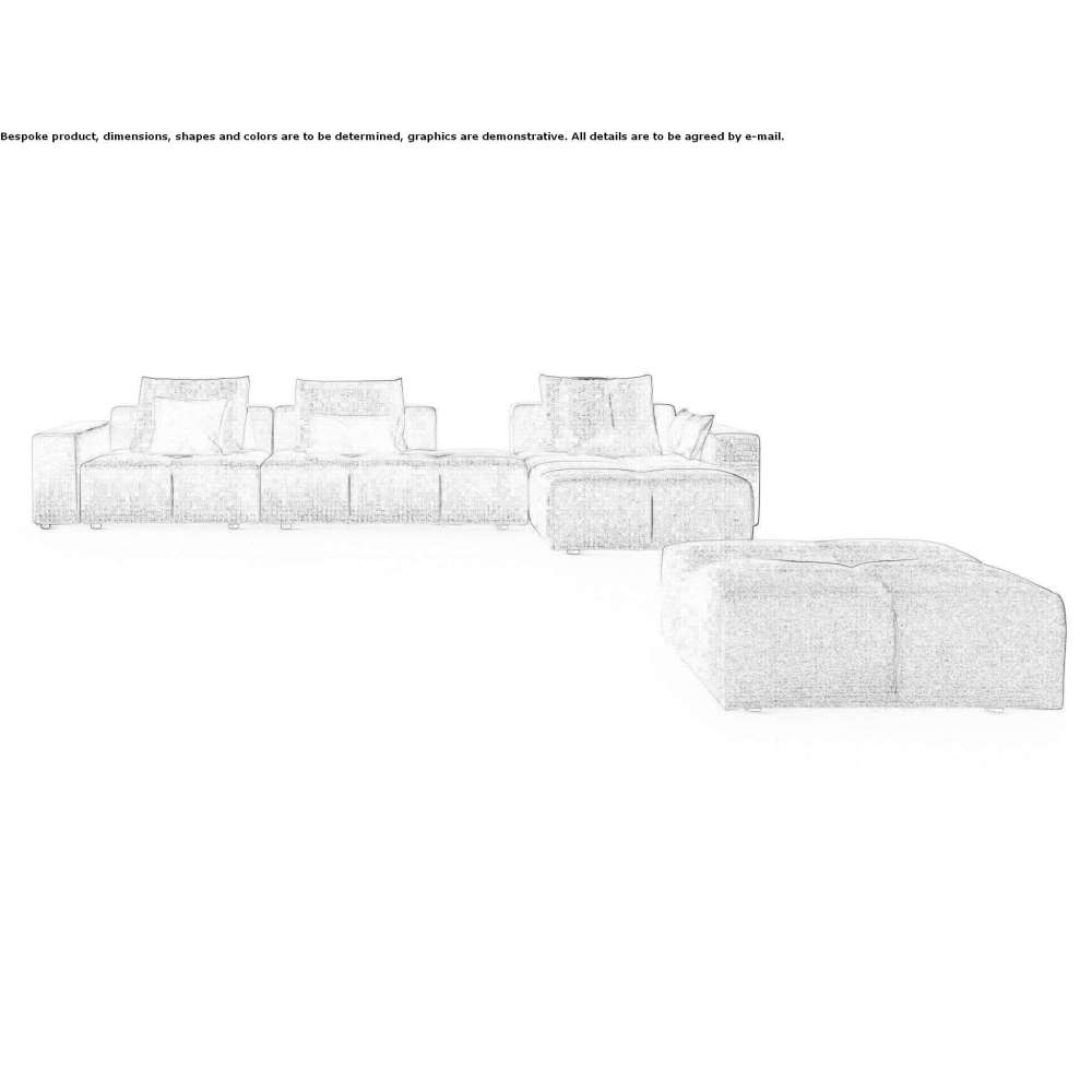The natural combination of all the elements of this sofa collection creates a harmonious atmosphere and the social charm of the seventies, in the language of timeless geometric purity. Bonamour is a system of seats, armrests and backrests placed on the floor, with a significant and clearly contemporary morphology. Modules of different rectangular shapes can be combined to create combinations of linear and angular volumes. The austerity of shapes, the calming formal and architectural expression is the stylistic "monogram" of this collection, while the tailoring care - marked by pleats interrupting the geometric step - is an expression of true values, achieved thanks to high standards of craftsmanship.