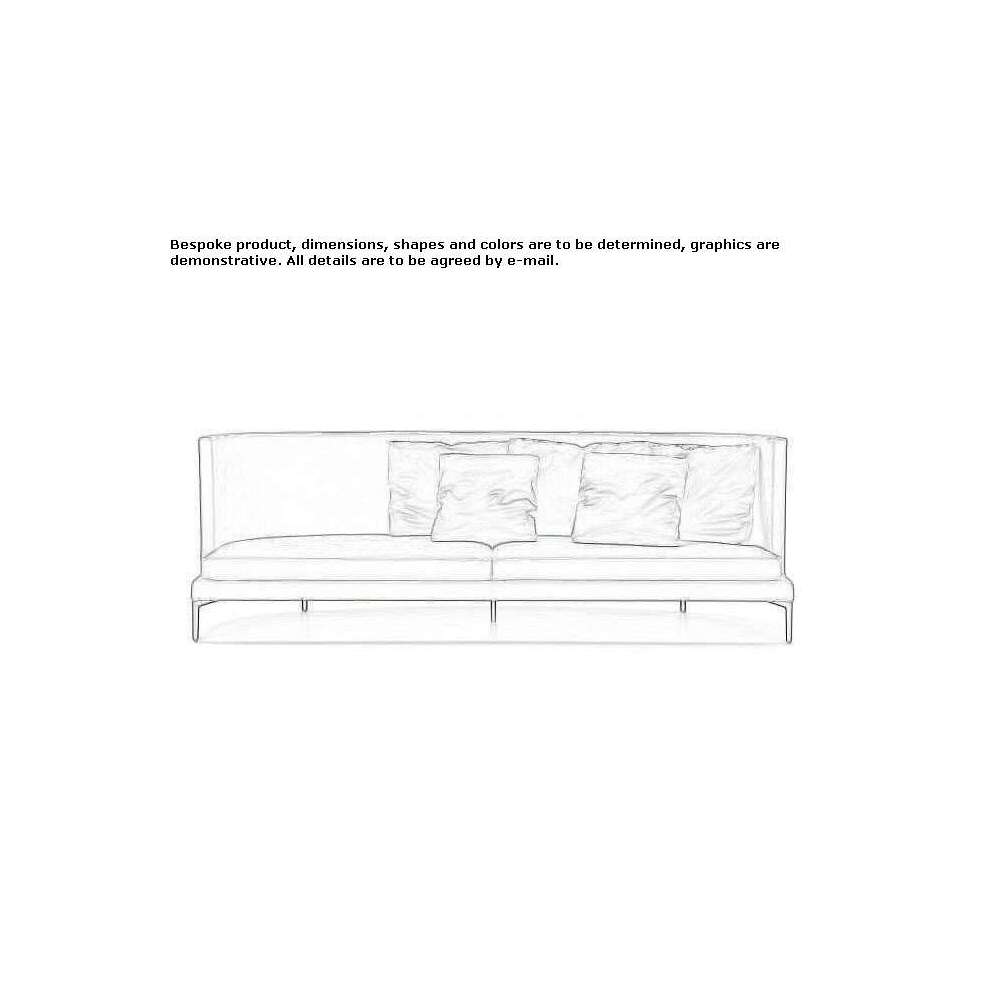 Sofas with a fir honeycomb structure and a poplar plywood base with inserts Steel tube frame with a cross-section of 25x25mm, painted with epoxy powders. Seat with strap and elastic springs covered with rubber. Padding made of polyurethane foam of varying density and covering made of 100% polyether combined with a thermos-fixed polyamide velvet base. Seat cushion in multi-density polyurethane foam, covered with treated polyester fiber cover and resin binder with polyamide velvet backing. Support pillows 50x50 cm or 50x70 cm made of washed and sterilized goose down, closed in separate sectors. Feet made of laser-cut steel sheet, painted with brown-gray or oxidized epoxy powders. Floor support guaranteed by supports made of thermoplastic material. Leather or fabric upholstery, fully removable with zippers and Velcro straps