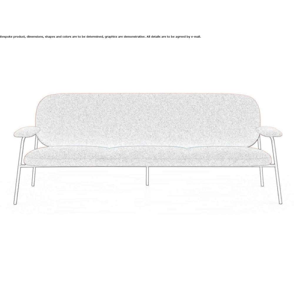 Philo is a 2- or 3-seater fabric sofa belonging to the collection of the same name. Philo is a prefix of Greek origin that means love, inclination and empathy towards people and things. A metallic thread connects the friendly silhouette; runs, rotates, rises and falls, wrapping and gently supporting upholstered surfaces. Agile dimensions give life to a seating system that can exist in different spaces: at home, in offices and in general in places where people meet, greet and build relationships. Philanthropic in nature, this elegant and simple sofa has a slim but solid, honest form. The character of the design is conveyed through the play of lines and colors. The metallic thread transforms into a sewing thread and continues the warp and weft, creating a unique harmony.