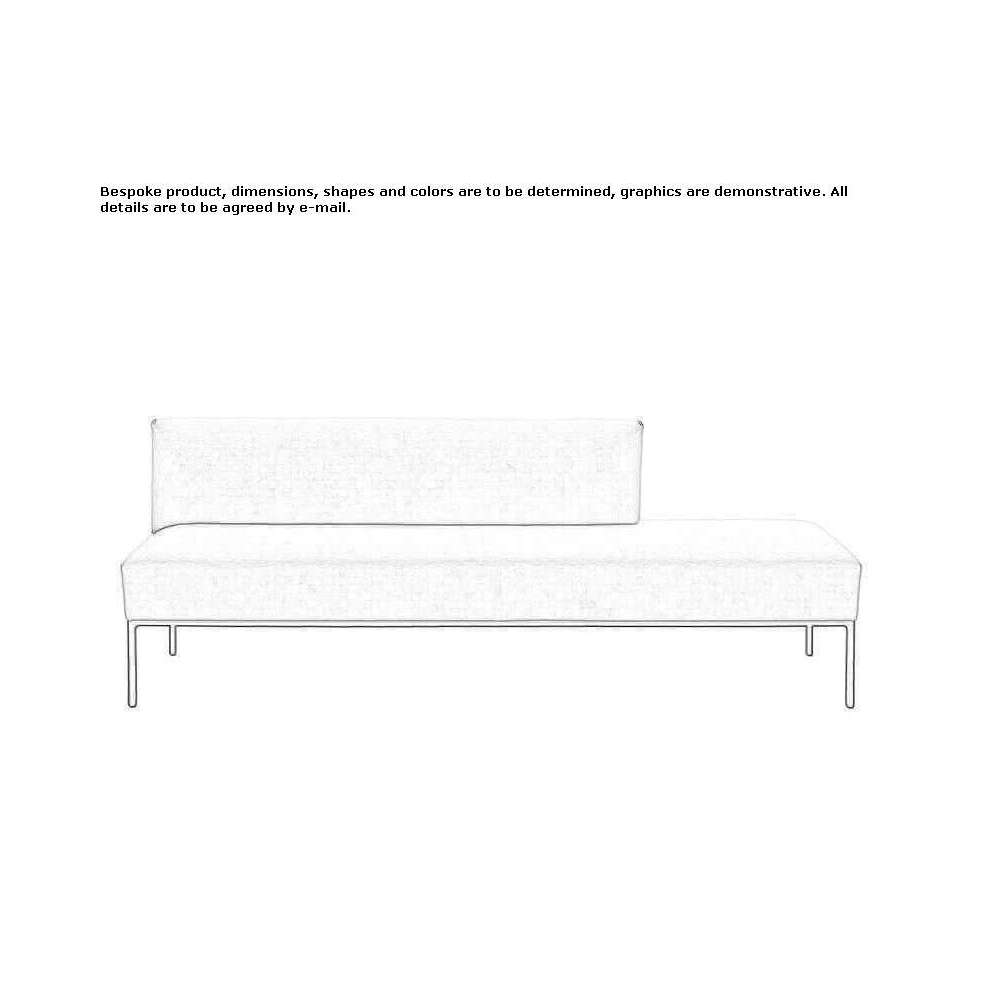 2/3-seater sofa with upholstered seat and backrest and 4-legged base in injected aluminum, available in various finishes. Right side.Raglan is a modular sofa system designed for use in collaborative areas, public and private spaces. Distinguished by high comfort and character, its form is defined by an upholstered circumferential seam. Meticulous upholstery work and exquisite seam detailing allow for a seemingly limitless range of fabric, color and finish combinations. This versatility means the collection can be adapted to any special requirements or space. The collection consists of single lounge chairs, two- and three-seater sofas and one, two and three modular elements that can be combined. The injected aluminum frame, available in white, black and polished aluminum, gives the pieces a solid and sturdy look, while the finishes give a soft and delicate appearance.