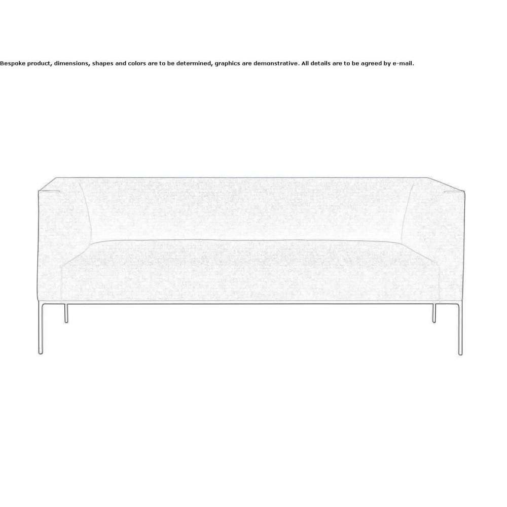 3-seater sofa with upholstered seat and backrest and 4-legged base in injected aluminum, available in various finishes. Raglan is a modular sofa system designed for use in collaborative areas, public and private spaces. Distinguished by high comfort and character, its form is defined by an upholstered circumferential seam. Meticulous upholstery work and exquisite seam detailing allow for a seemingly limitless range of fabric, color and finish combinations. This versatility means the collection can be adapted to any special requirements or space. The collection consists of single lounge chairs, two- and three-seater sofas and one, two and three modular elements that can be combined. The injected aluminum frame, available in white, black and polished aluminum, gives the pieces a solid and sturdy look, while the finishes give a soft and delicate appearance.