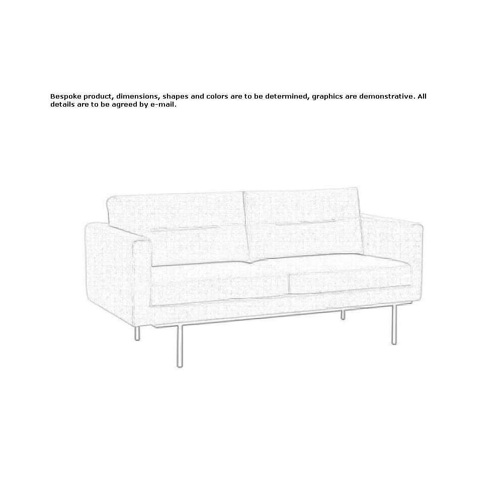 2-seater sofa with upholstered seat and backrest and 4-legged steel legs finished in polished chrome, white or black.
