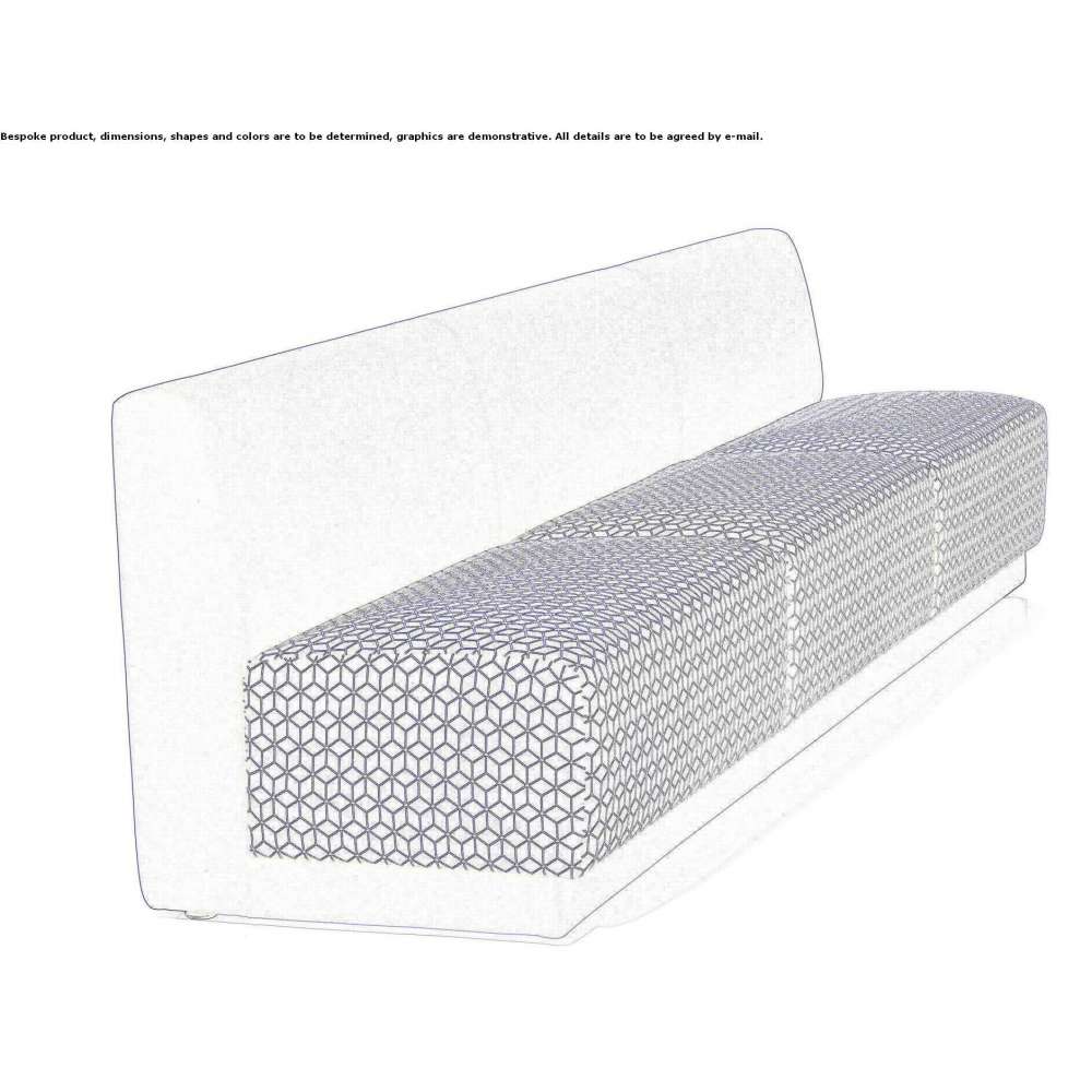 Solomon offers stress-resistant, flame-retardant polyurethane foam in various densities and polyester fiber on a wooden frame. Polypropylene feet. The covers of the Sushi Edition collection are not removable. Sushi, Karkaoma, Juju, Donut, Joy, damask embroidery, oriental symbolism, floral patterns and digital grids: a collection that finds its identity in an abundance of layers. There is an accumulation of various stimuli and impulses, a manic flow that passes from architectural forms to various images from folklore. Traditional, futuristic, digital rationality, three-dimensional, romantic, psychedelic rapture, visual melting pot of fabrics, fear of emptiness, harmony, immodesty, delicacy and geometric austerity... an endless sequence of images and visions that neither frighten nor intimidate, but rather welcome user in a soft, hypnotic kaleidoscope. The blue edition of the Sushi collection for Moroso is based on the original Sushi series, a playful range of sophisticated seating solutions for living rooms. While the original line features a wealth of colors, the blue edition has a more stately look with subtle geometric patterns in shades ranging from cerulean to royal cobalt blue. Additionally, the collection will include red, green and gray editions. The Sushi Collection is designed to offer a wide range of seating options for living rooms and lobbies. From open benches and poufs to high-walled chairs allowing for more private conversations or intimate face-to-face meetings. A surprising variety of shapes transforms spaces into landscapes where harmonious colors and patterns serve to unite various elements. All Febrik fabrics are woven from durable yet very comfortable materials.
