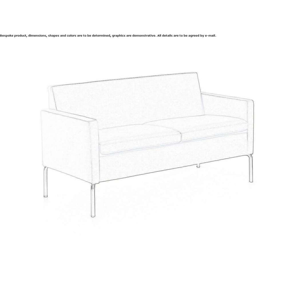 sofa, armchair and bench inspired by the philosophy of simple and elegant design, made with artisanal attention to detail. The structure consists of a wooden frame covered with non-deformable, expanded polyurethane padding of various thicknesses and polyester fibers, with a seat on elastic straps that guarantee optimal comfort. Metal legs, chrome-plated. The upholstery is made of fabric or leather, attached to the structure and removed to provide cushions.