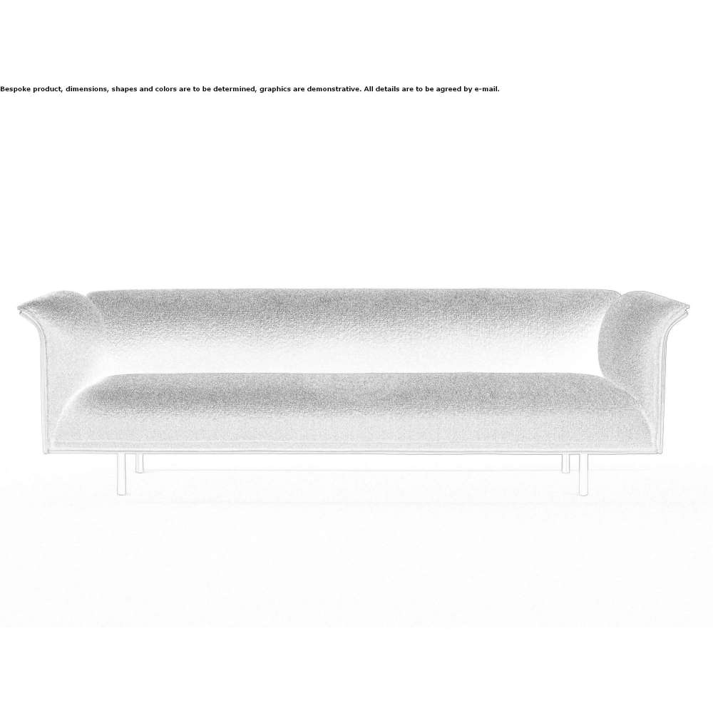 Fabric sofa with two or three seats.Noon is a modular collection of upholstered products that gently curve at the edges. The Noona arm allows the pillow to glide in an arc, creating an additional level of comfort and softness to the product. Tension is created between the sewing details on the inner and outer surfaces, which run parallel to form the frame and outline of the product. The composition of materials balanced by a discreet aesthetic creates harmony between the elements of the South Collection . The collection was designed specifically for commercial living spaces and includes modular lounge rooms, an armchair, two coffee tables, an attached mirror and a rug in three color versions.