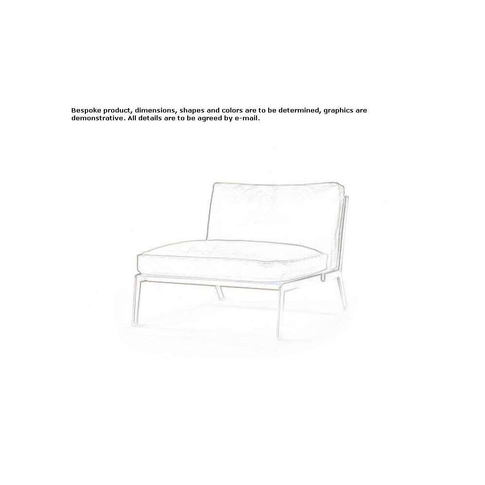 The Happy armchair is characterized by the same aesthetic elegance expressed by the titular sofa. The unique seat back consists of a metal frame decorated with a refined, completely hand-woven open-weave pattern of cowhide cord. Soft seat and back cushions filled with goose down provide a striking visual contrast to the discreet but elegant metal structure. The couture cut of the upholstery is highlighted with tone-on-tone or contrasting grosgrain piping.