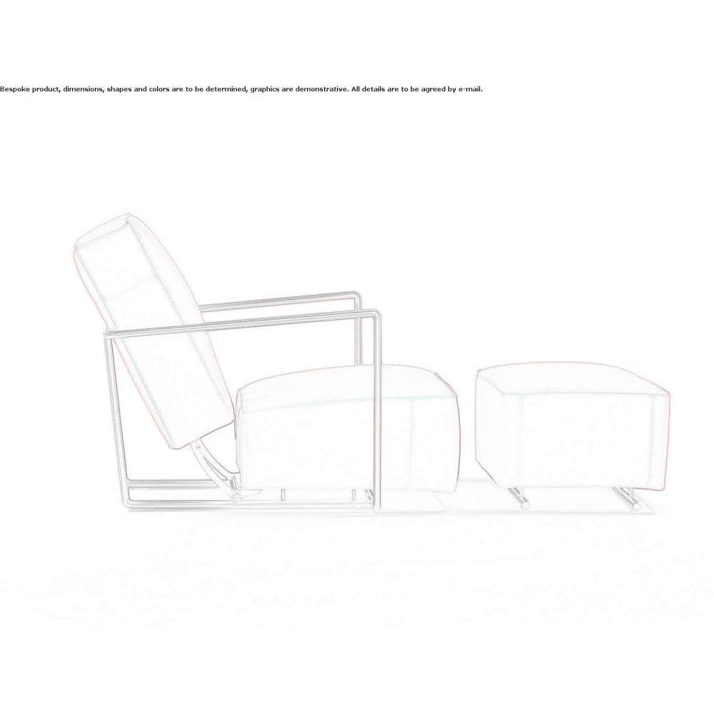 The prominent use of black leather and its tubular metal structure clearly links the concept of the ABC armchair to the design language of the modernist movement. However, the low seat, which allows the upholstered pieces to fit perfectly into the tubular metal structure, is thoroughly contemporary. The metal structure is available in satin, chrome, polished, black chrome or champagne. The ABC armchair can be combined with a footstool of the same name and is equipped with a state-of-the-art backrest tilting mechanism. The completely removable upholstery can be made of all fabrics and leathers from the exclusive Flexform collection. A version of the ABC armchair with armrests upholstered in cowhide is also available.