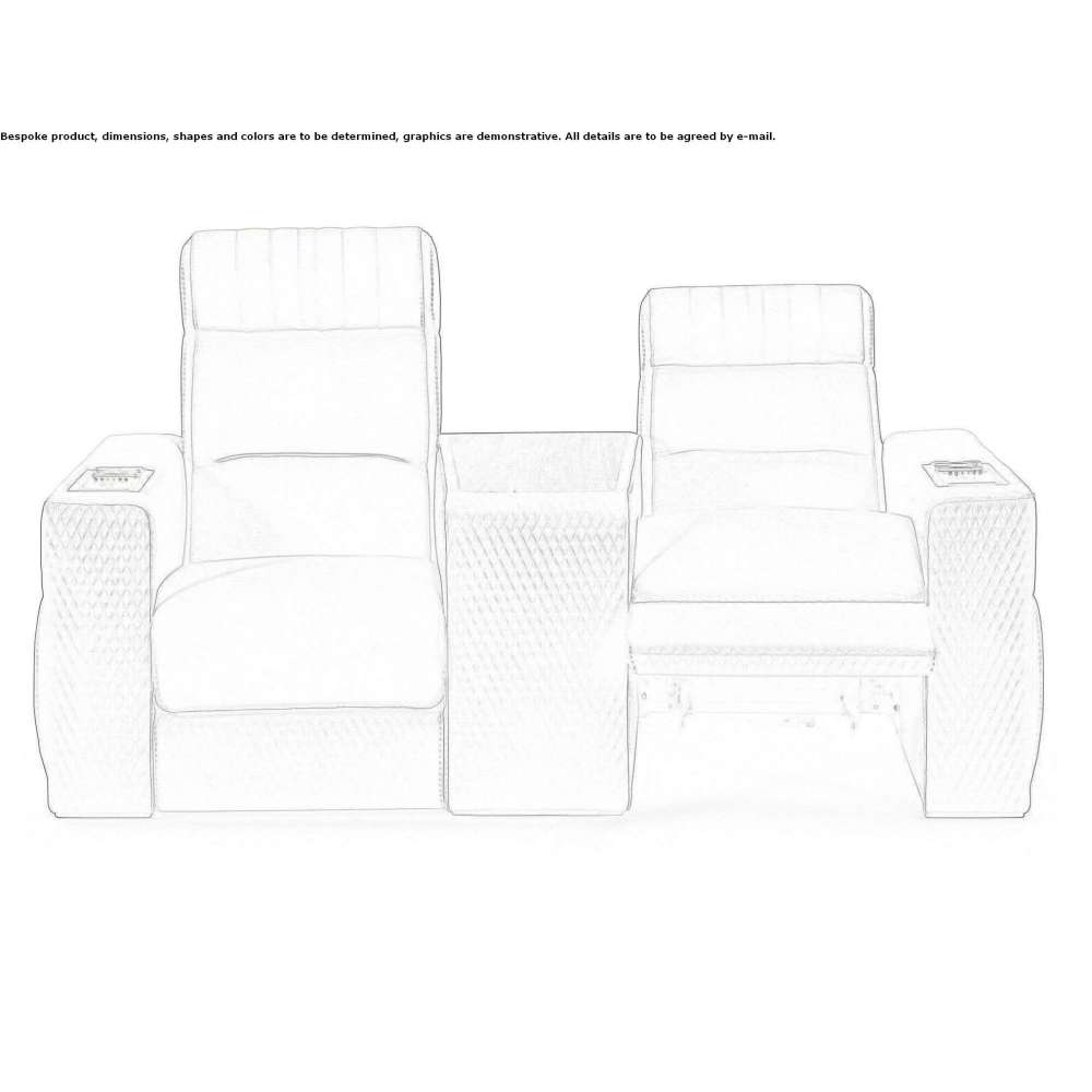Dustin B is a fabric armchair for home cinema with motorized functions. Inflatable, low cushion with invisible backrest. Cup holder for cooling/heating. Electric leg/backrest unfolding mechanism. Electric headrest tilting mechanism. Cup holder lighting. Lower multi-color lighting. USB charger. DUSTIN home cinema can be fully customized to your needs thanks to a wide range of prestigious materials such as leathers, marbles and unique velvets.