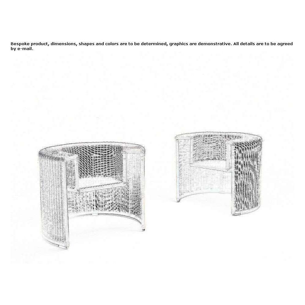 Small armchair with a structure made of formed steel with a white coating, 12 mm in diameter, covered with a natural uncoated hand-woven core by skilled Italian weavers, diameter 3 mm. Feet made of molded PVC.