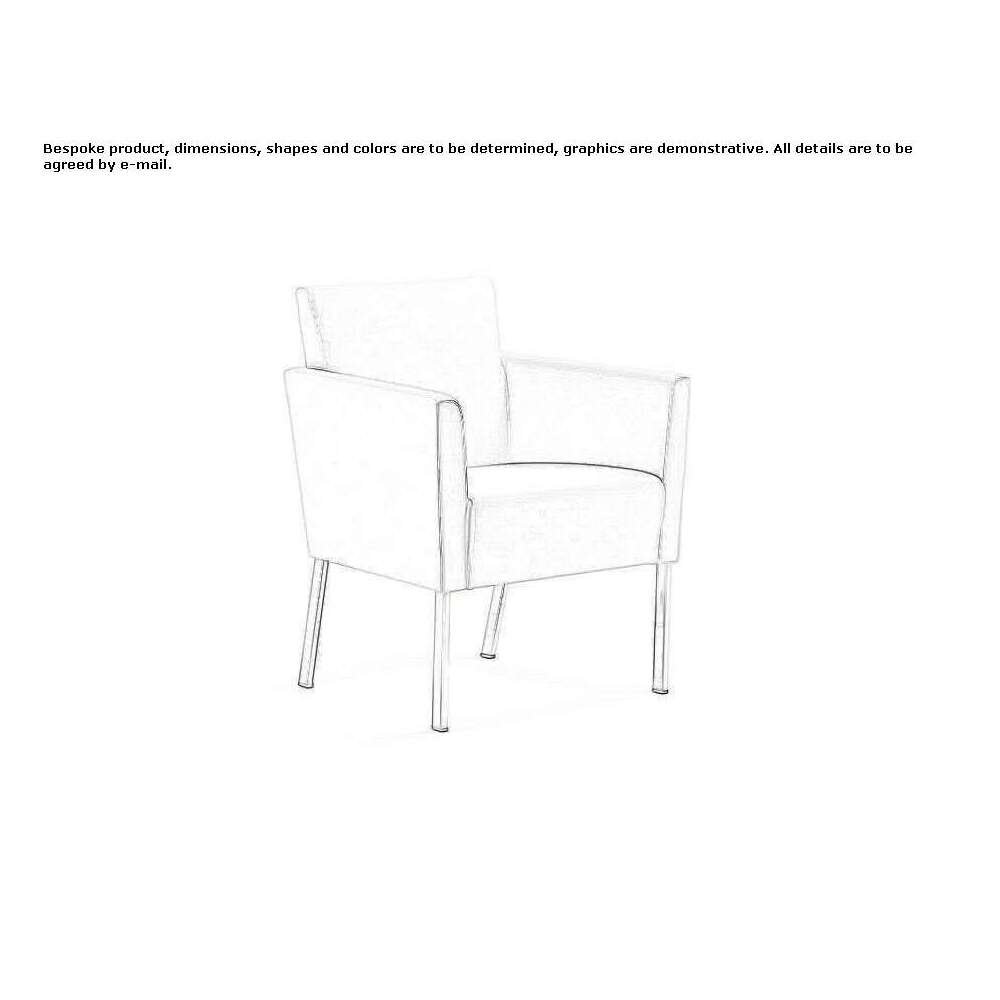 Dimensions: H: 31 7 ⁄ 8” L: 25 15 ⁄ 16” D: 22 1 ⁄ 16” H: seat 18 1 ⁄ 8” A versatile family of sofas and armchairs, including a small armchair and a stool. They all feature basic lines, but each element has its own personality. The structure consists of a wooden frame covered with non-deformable, expanded polyurethane padding of various thicknesses and polyester fibers, with a seat on elastic straps that guarantee optimal comfort. Chrome-plated metal legs, with fabric or leather upholstery.