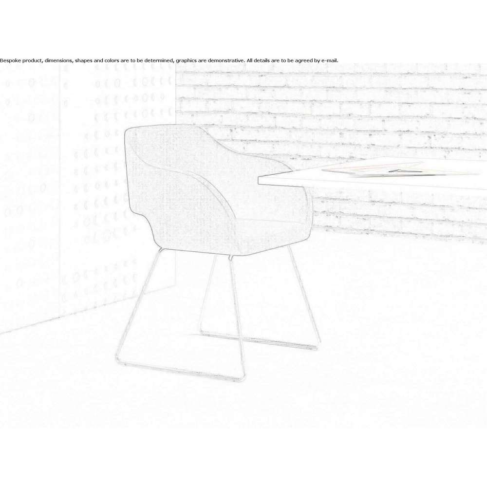 Upholstered armchair for conference rooms or waiting rooms. The integrated design of the seat, backrest and armrests ensures optimal comfort in any context. Its shape highlights the covering, suggesting color combinations in matching shades or using different fabrics.