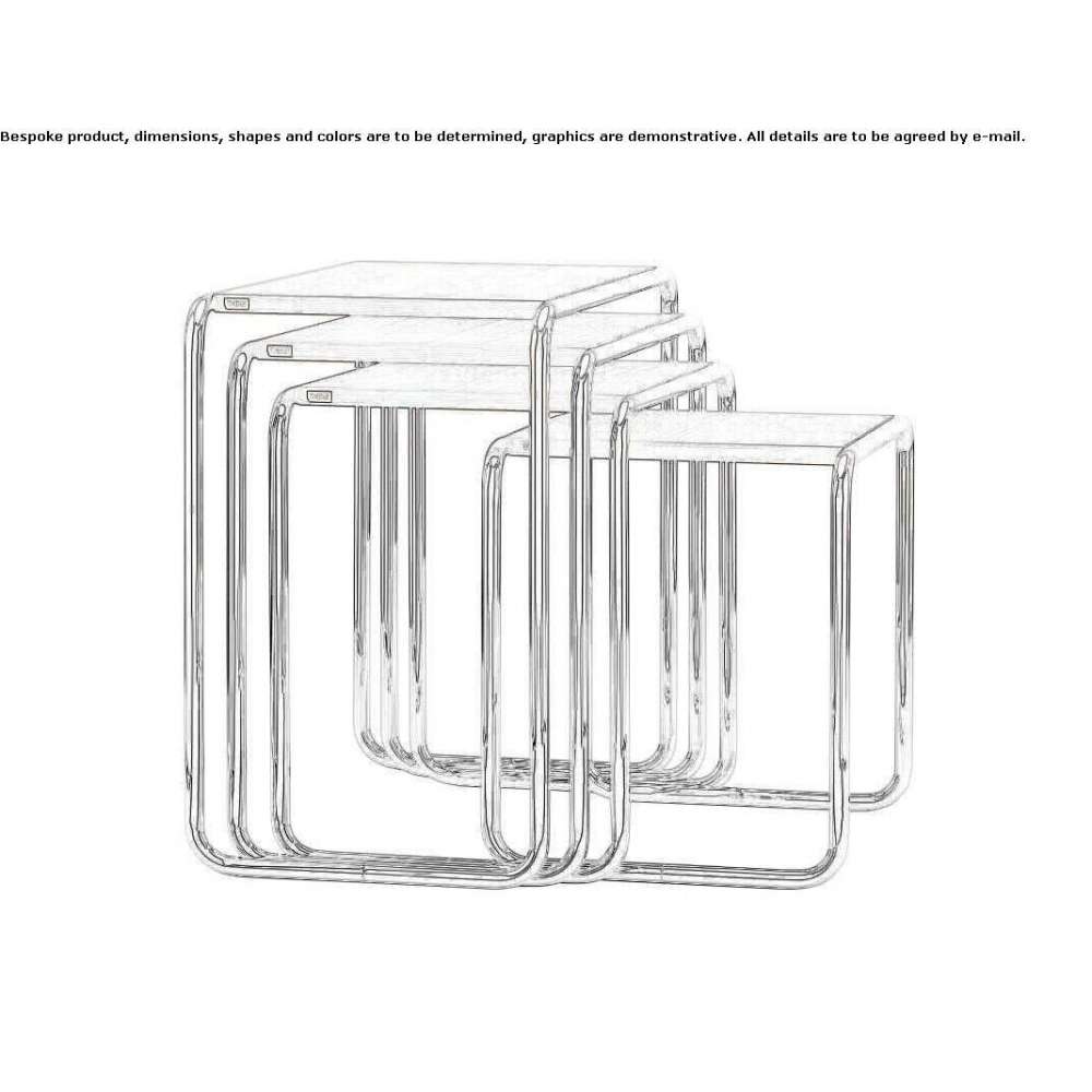 During his stay at the Bauhaus, Marcel Breuer experimented with steel and steel pipes, logically transferring the principles of using materials corresponding to their properties for the production of woodworking furniture to this new material. The great advantage of this process was the proximity of the Junkers plant in Dessau. His first projects included the B 9 nesting tables, various shelves and side furniture. The Thonet catalog from 1930/31 contained the full offer. B 9 nesting tables were used in the canteen of Walter Gropius' Bauhaus building in Dessau. Today, these elegant tables find their place in residential or contract environments.