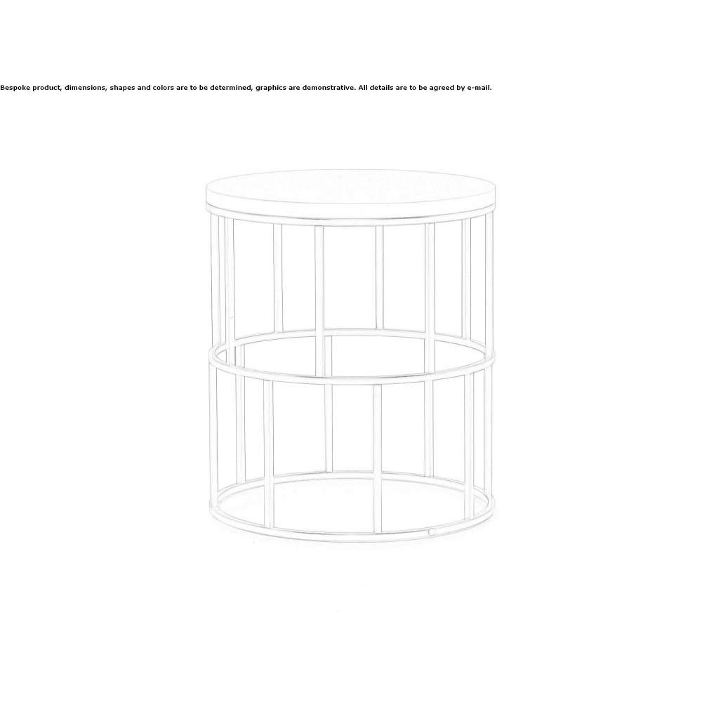 MARBLE FINISHES - WOOD LACQUERSA collection including an ottoman, a bench, small tables and lamps with a metal mesh base. The circular support, slim and light, includes wood or marble tops or upholstery that allows you to transform the table into an ottoman or bench. The floor lamp - a tall cylindrical metal grid - has an opal polycarbonate lampshade covered with cream fabric.